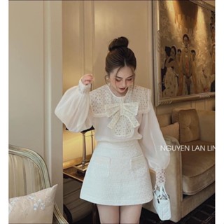 Set chân váy dạ tweed mix áo sơ mi siêu xinh