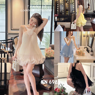 Váy maxi dáng dài xếp ly kèm hoa ở cổ đủ 4 màu