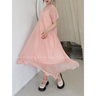 Váy sóng gân tay cộc dáng dài LALACRUSH