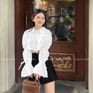 [Hebe Top] Áo sơ mi dáng croptop tay bồng, dài tay trơn 4 màu LalaCrush