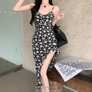 Lalisas Đầm Hoa Hai Dây Ôm Eo Xẻ Tà Kiểu Pháp Thời Trang Quyến Rũ Cho Nữ