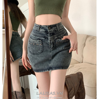 Lalisas Chân váy jean Ngắn Dáng Chữ A Hai Túi Phong Cách retro Cá Tính Dành Cho Nữ