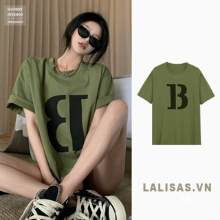 Áo Thun cotton Tay Ngắn Dáng Rộng In Chữ Lalisa Dopamine Kiểu retro Mỹ Thời Trang Cho Nữ