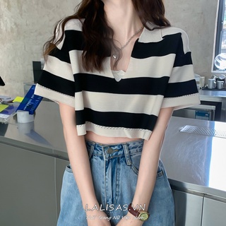 LALISAS Áo thun dệt kim tay ngắn phong cách thời trang hàn quốc dành cho nữ