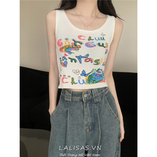 Áo Dệt Kim Sát Nách Dáng Ôm In Họa Tiết Vui Nhộn Thời Trang Hàn Quốc Cho Nữ