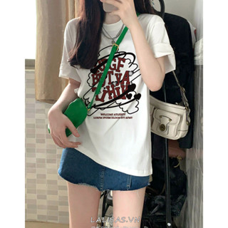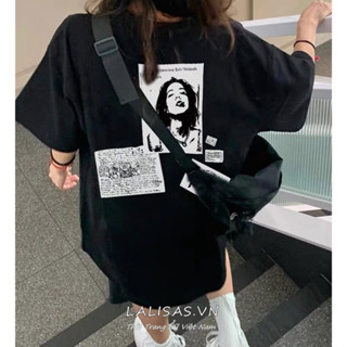 Áo Thun cotton Tay Ngắn Dáng Rộng In Họa Tiết Chữ LALISAS Phong Cách retro Mỹ Thời Trang Cho Nữ