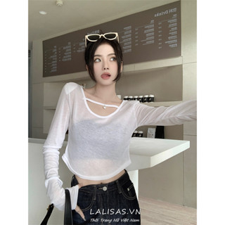 Lalisas Áo Croptop Tay Dài Chống Nắng Cột Dây Khoét Rỗng Thiết Kế Thời Trang Quyến Rũ Cho Nữ