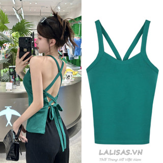 Lalisas Áo tank top Hai Dây Có Mút Đệm Ngực Màu Xanh Lá Quyến Rũ Dành Cho Nữ