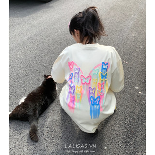 Áo Thun Tay Ngắn Dáng Rộng In Họa Tiết Bươm Bướm Thời Trang Cho Nữ