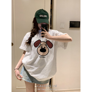 Áo Thun Cotton Ngắn Tay Dáng Rộng In Hình Cún Cưng Ngộ Nghĩnh Cho Nữ