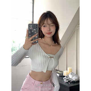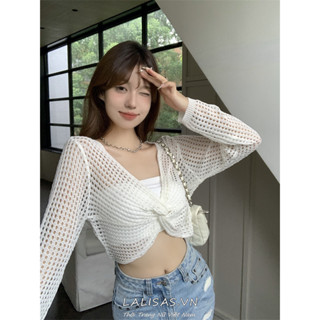 Lalisas Áo Dệt Kim Tay Dài Chống Nắng Dáng Ngắn Phong Cách Hàn Quốc Cho Nữ
