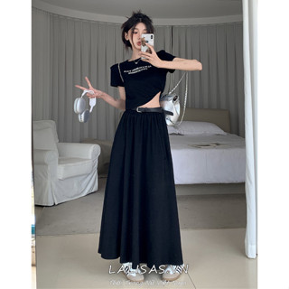 Lalisas Bộ Áo Croptop Ngắn Tay In Chữ + Chân Váy Dài Lưng Cao Thời Trang Ngọt Ngào Cho Nữ (Đặt Hàng Riêng Biệt)