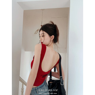 Lalisas Áo crop top Hai Dây Có Đệm Ngực In Chữ Tiếng Anh Quyến Rũ Dành Cho Nữ