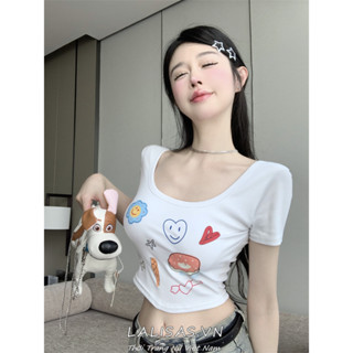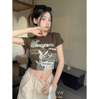 Lalisas Áo Thun Croptop Tay Ngắn Hở Lưng Dáng Ôm In Họa Tiết Cô Gái Gia Vị Mỹ Cổ Điển Dành Cho Bạn Nữ