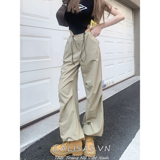 Lalisas Quần Yếm Dây Rút Ống Rộng Eo Cao Giản Dị Cá Tính Dành Cho Nữ