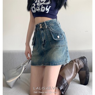 Lalisas Chân váy jean Ngắn Dáng Chữ A Lưng Cao Phong Cách retro Mỹ Cho Nữ