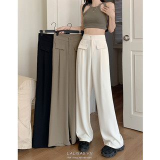 Lalisas Quần ống rộng Lưng Cao Co Giãn Có Túi Trang Trí Phong Cách Hàn Quốc Cho Nữ