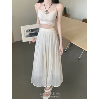 Lalisas Chân Váy Dài Dáng Chữ A Lưng Cao Xếp Ly Màu Trơn Phong Cách Hàn Quốc Cho Nữ