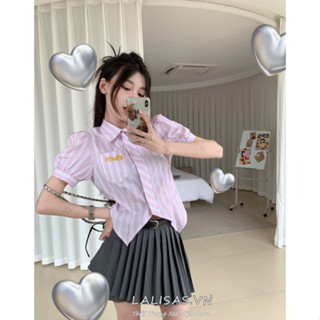 Lalisas Áo Croptop Hai Dây Kẻ Sọc Thêu Hình Gia Vị Ngọt Ngào Phong Cách retro Hàn Quốc Cho Nữ