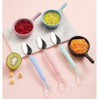 Thìa, Muỗng Nạo Nhỏ Hoa Quả Cho Bé Ăn Dặm - 1 Đầu Silicon Siêu Mềm, 1 Đầu Nạo Tích Hợp 2 Trong 1