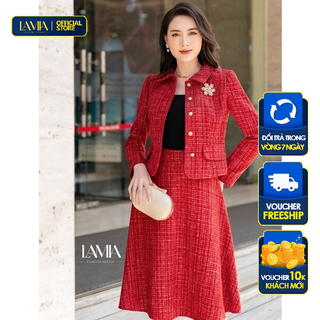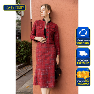 Set vest công sở nữ Lamia Design LE181 dạ tweed màu đỏ đô sang trọng tinh tế