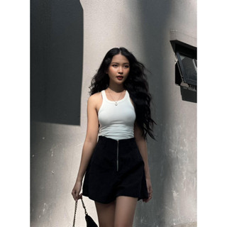 Áo da màu đen kiểu hai dây khoá kéo, là min - LEATHER BUCKLE DETAIL CAMI TOP