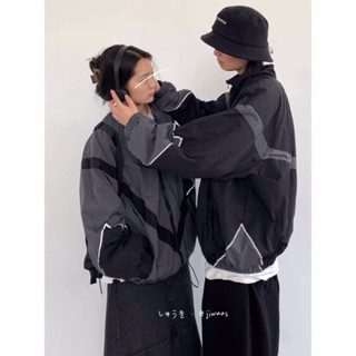Áo Khoác Dù Racing Có Phản Quang Chất Dù 2 Lớp Unisex Form Rộng Nam Nữ