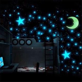Bộ 100 miếng dán dạ quang hình ngôi sao và mặt trăng trang trí phòng ngủ
