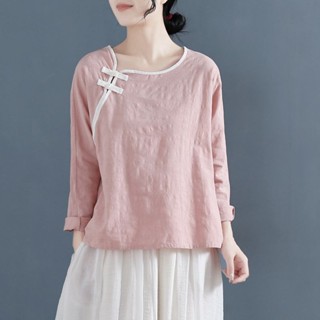 Áo Sơ Mi Vải Lanh Cotton Tay Dài Cài Nút Chéo Phong Cách Hanfu Cổ Điển Kiểu Mới 2023