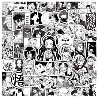 Set 60/30 Nhãn Dán Trang Trí Bình Nước/Điện Thoại/Ván Trượt/Laptop Họa Tiết Anime Màu Trắng Đen
