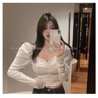 Áo thun nữ dài tay cổ vuông tay bồng 2 màu kèm ảnh thật LanuShop