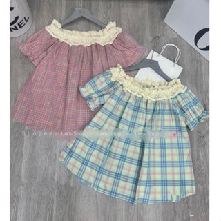[Sẵn Giá sốc] Áo trễ vai bèo ren , Áo kẻ trễ vai cổ ren dáng dài siêu xinh LanuShop