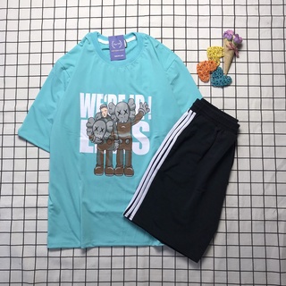 Set Đồ Bộ Tay Lỡ In Hình Kaws Xanh Quần 3line - Lapi VN Phong Cách Unisex , Đồ Mặc Nhà Dễ Thương