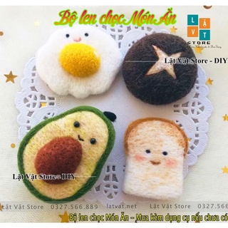 Bộ kit len chọc Món Ăn Hàng Ngày - Needle feltiong egg, quả bơ dễ thương, món quà tự làm, móc chìa khoá từ chọc len rẻ