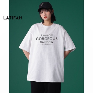 Áo thun unisex tay lỡ Latifah form rộng in chữ RAINBOW GORGEOUS AT010 chất vãi dày dặn co giãn 2 chiều
