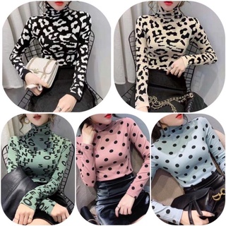 Áo giữ nhiệt nữ dài tay cổ 3 phân, áo giữ nhiệt nữ cao cấp hoạ tiết phong cách Hàn Quốc phối đồ xinh AT198