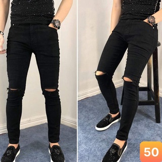 Quần jean nam màu đen rách gối chất liệu bò jeans cao cấp co dãn 4 chiều đẹp form rin skinny LAVADO50 mẫu mới