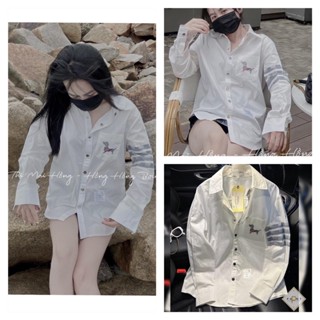 Áo Sơ Mi Nam Nữ Thom Browne Dài Tay Hoạ Tiết Thêu Độc Đáo Màu Trắng Chất Liệu Vải Gai Cao Cấp, Thoáng Mát