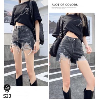 Quần short jean màu xám cạp cao rách gối nhìu tưa lai cá tinh Lê Huy Fashion MS S20