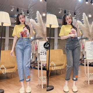 Quần jean ngố rách đùi loang hai màu lưng cao có tag siêu cưng Lê Huy Fashion MS 4662