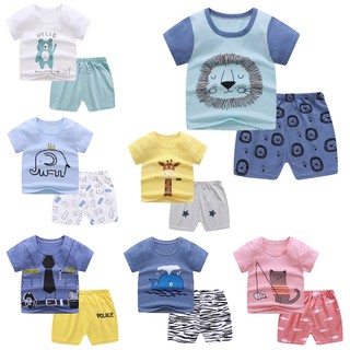 Bộ áo thun vải cotton tay ngắn + quần đùi họa tiết hoạt hình ngộ nghĩnh dành cho bé trai 1-5 tuổi