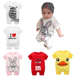 Áo liền quần tay ngắn họa tiết hoạt hình dễ thương cho trẻ sơ sinh 0-18 tháng