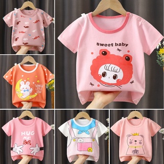 Áo Thun Tay Ngắn Vải Cotton Thiết Kế Dễ Thương Cho Bé Gái Từ 0-7 Tuổi
