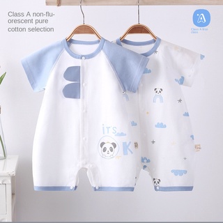 Bộ Áo Liền Quần Tay Ngắn Chất Liệu Cotton In Hình Gấu Trúc Hoạt Hình Dành Cho Bé Sơ Sinh 0-30 Tháng