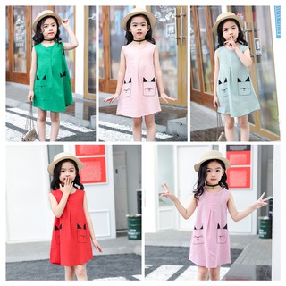 [LF] Đầm Cotton + Linen Không Tay Thời Trang Xuân Hè Cho Bé Gái 100-160cm