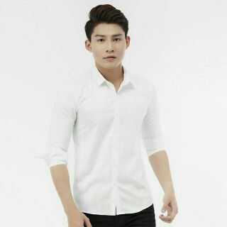 Áo Sơ mi nam màu trắng chất vải lụa, Sơmi nam phong cách Hàn Quốc