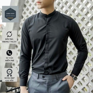 Áo Sơ mi nam cổ tàu, chất vải lụa không nhăn, không xù, tôn dáng