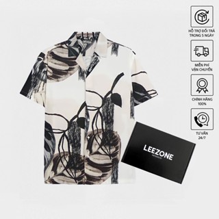 Áo sơ mi Cuban LeeZone form rộng mặc hằng ngày Fullbox, chất vải lụa thoáng mát không nhăn | Sơ mi hoạ tiết Châu Âu