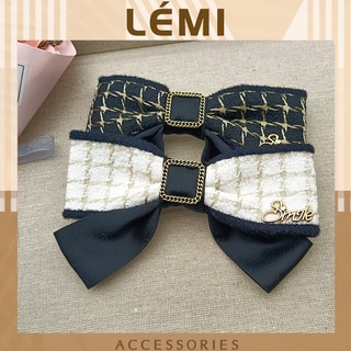Kẹp tóc vải thắt nơ có chữ Smile 2 màu đen trắng sang trọng, phù hợp các chị làm văn phòng, Lémi Accessories