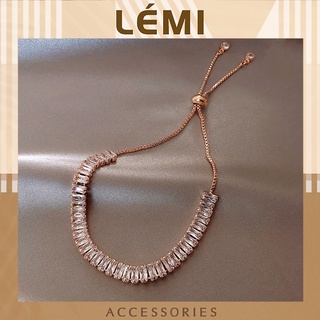 Lắc tay nữ đính đá zircon LEMI Vòng tay retro dây rút chỉnh kích thước thông minh bền màu thời trang Hàn Quốc
